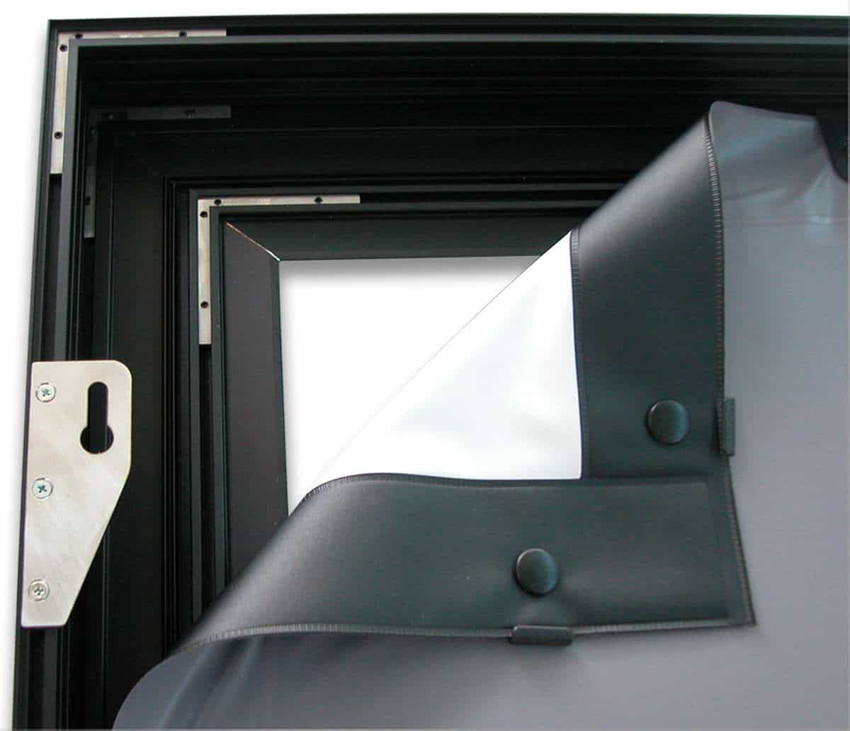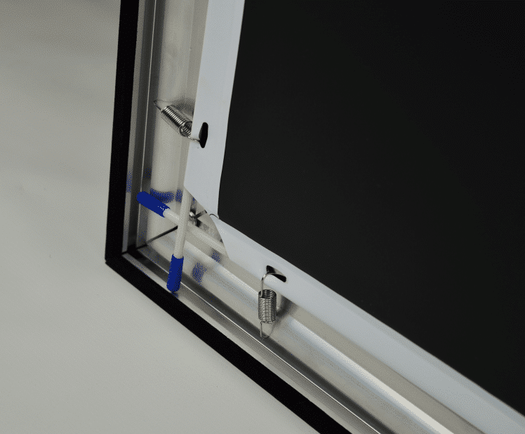 Fixed Frame Screens are tensioned screens designed for use in permanent locations. These screens integrate well into boardrooms, home theaters and other frequent meeting spaces. Specially designed aluminum alloy frame to make the screen light in transportation. A choice of high gain and large viewing angle of fabrics for different applications. The unique tightening system ensure a perfect flat screen. Easy installing brackets. Screen Fabric is Soft Matte White The New kind of screen surface for front projection when ambient light is controllable. It enables unlimited viewing angles and perfect uniformity while giving precise definition and reproduction of color or black and white. Screen surface is washable with mild soap and water, flame retardant and mildew resistant. Viewing Angle: 60° Gain: 1.2.