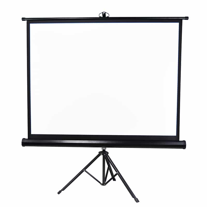 Our Tripod Projection screens are made from a matte white, high-resolution material that produces distortion-free top quality output for images. This adjustable tripod screen retracts smoothly and provides a properly tensioned viewing surface.